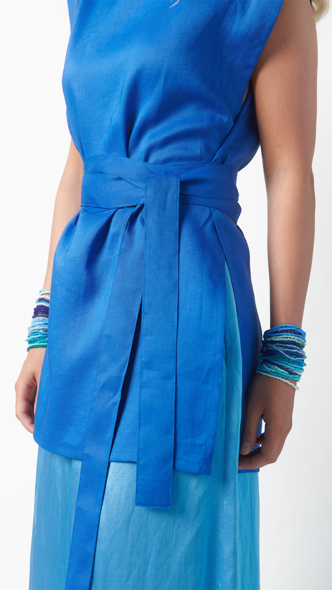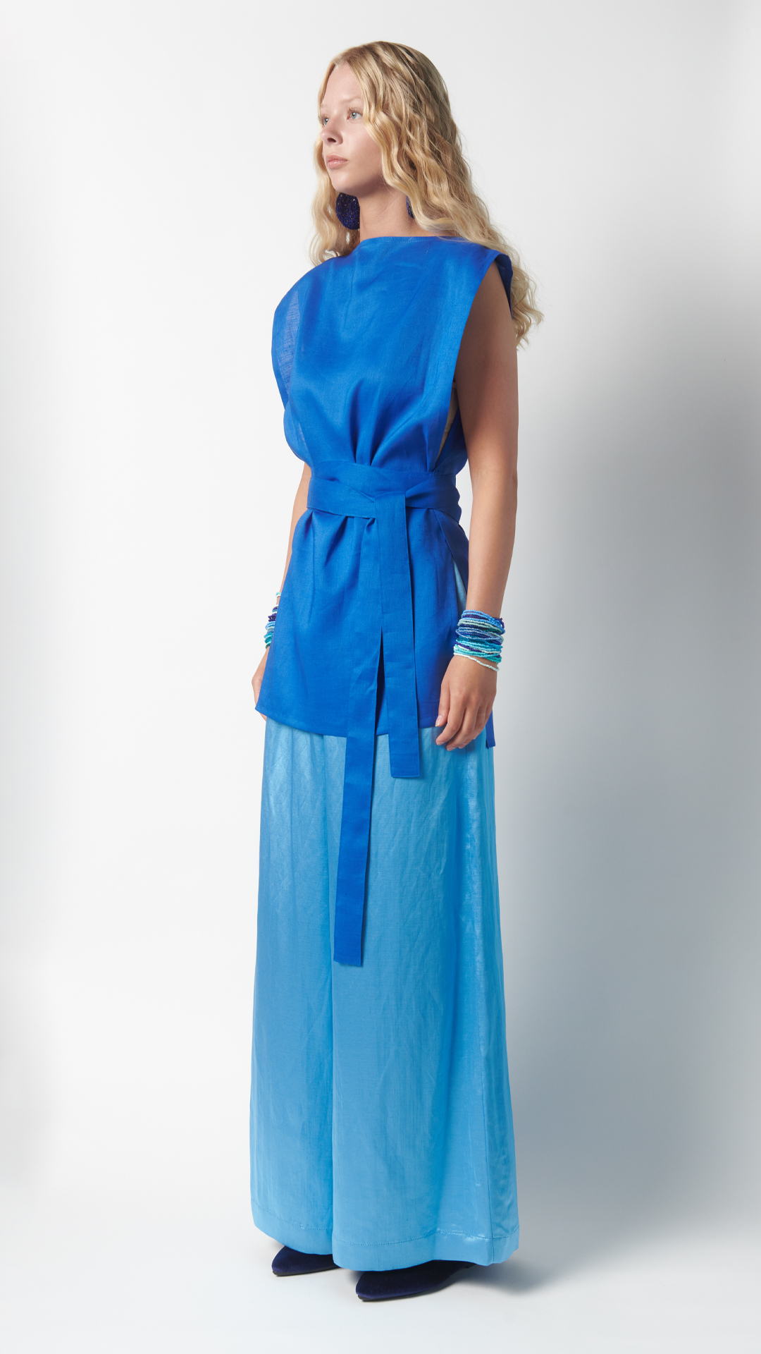 Cintura: taffetà croccante in pura seta in colore a contrasto.
